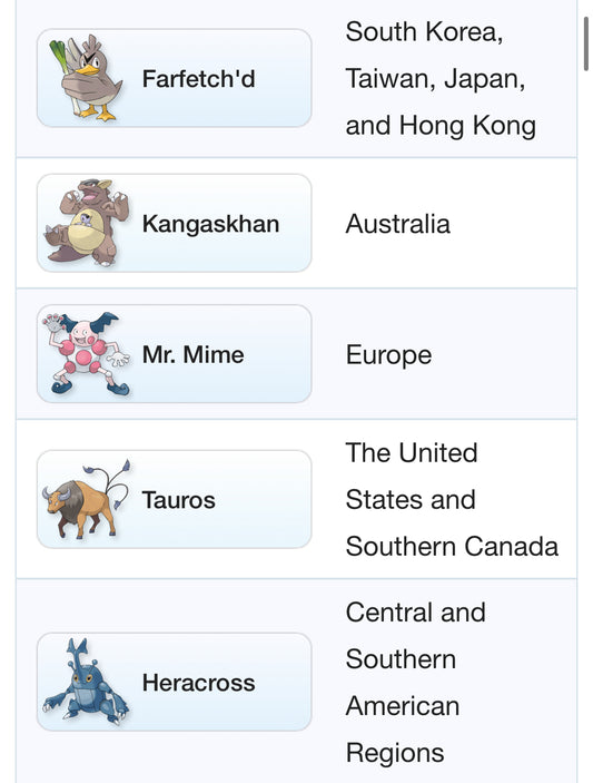 Regional Pokemon trades