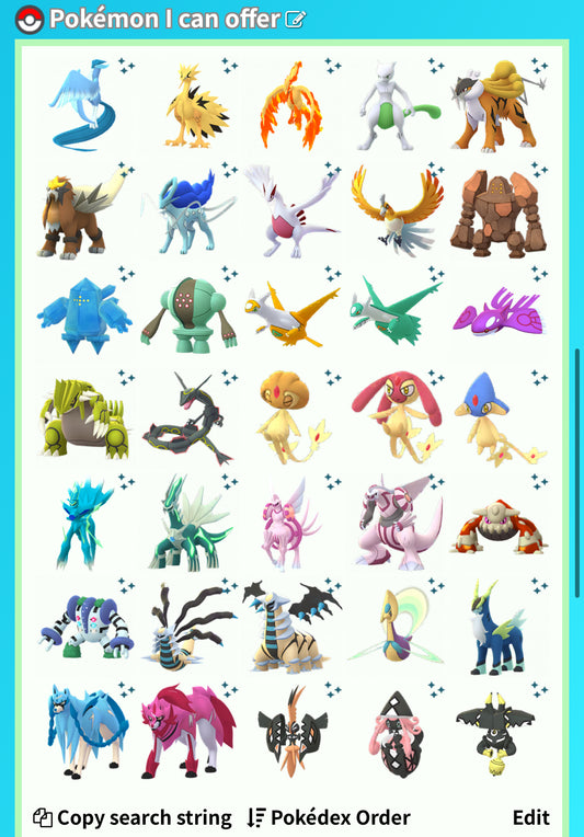 Each account has all of the Pokemon shown in the photos. All of the Pokemon shown can be traded. Text me at 415-535-8495 to get your account delivered to you immediately.